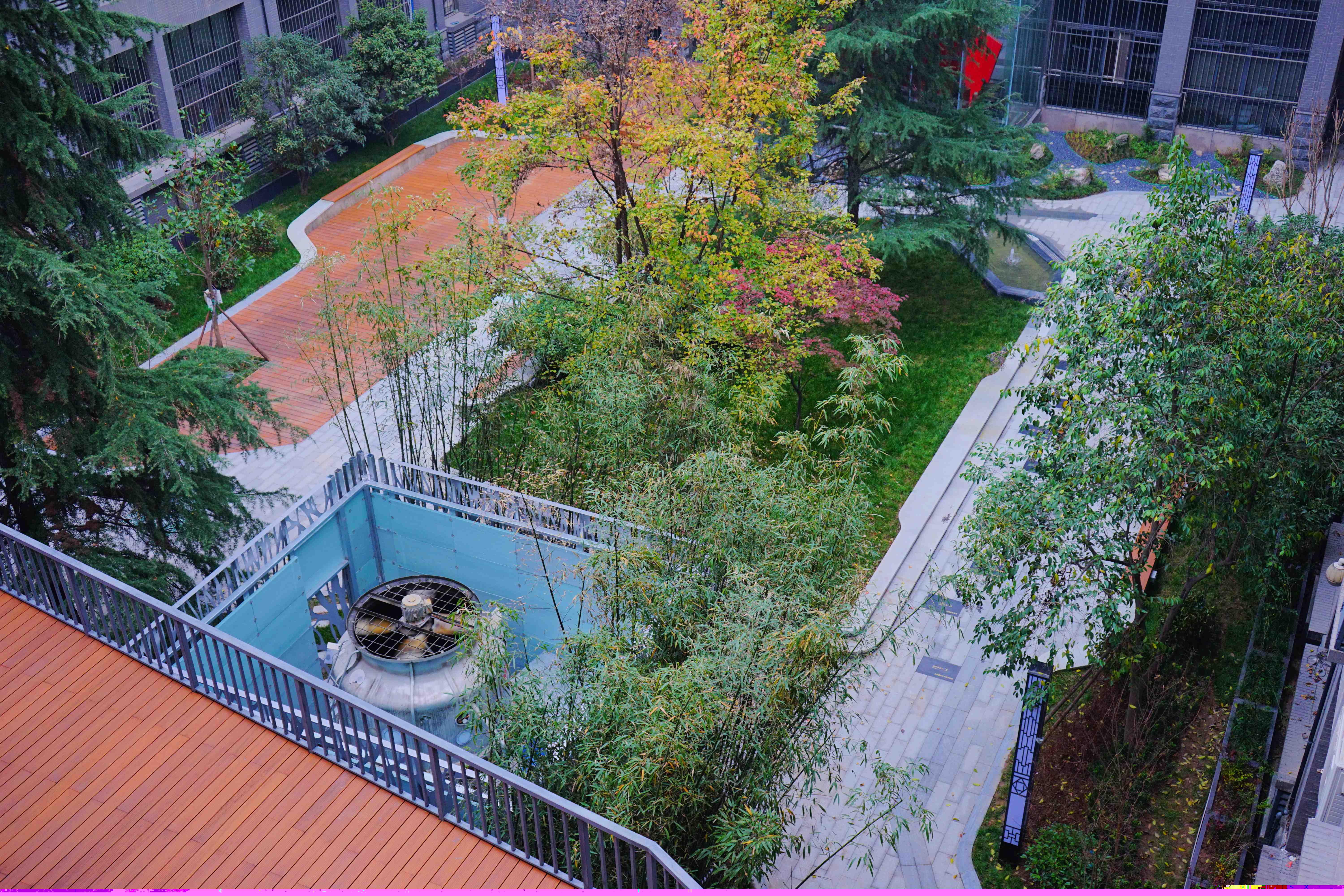 花园中雪松、五角枫、红枫、海桐球长势良好,即使在深秋时节,依然能感受到火红的枫叶带来的暖意。新植入的玉兰也在蓄势欲发,期待来年春天万物复苏之时花园别样的景致。在此番美景里约三五好友或闲谈或独坐,都会有不一样的情趣。