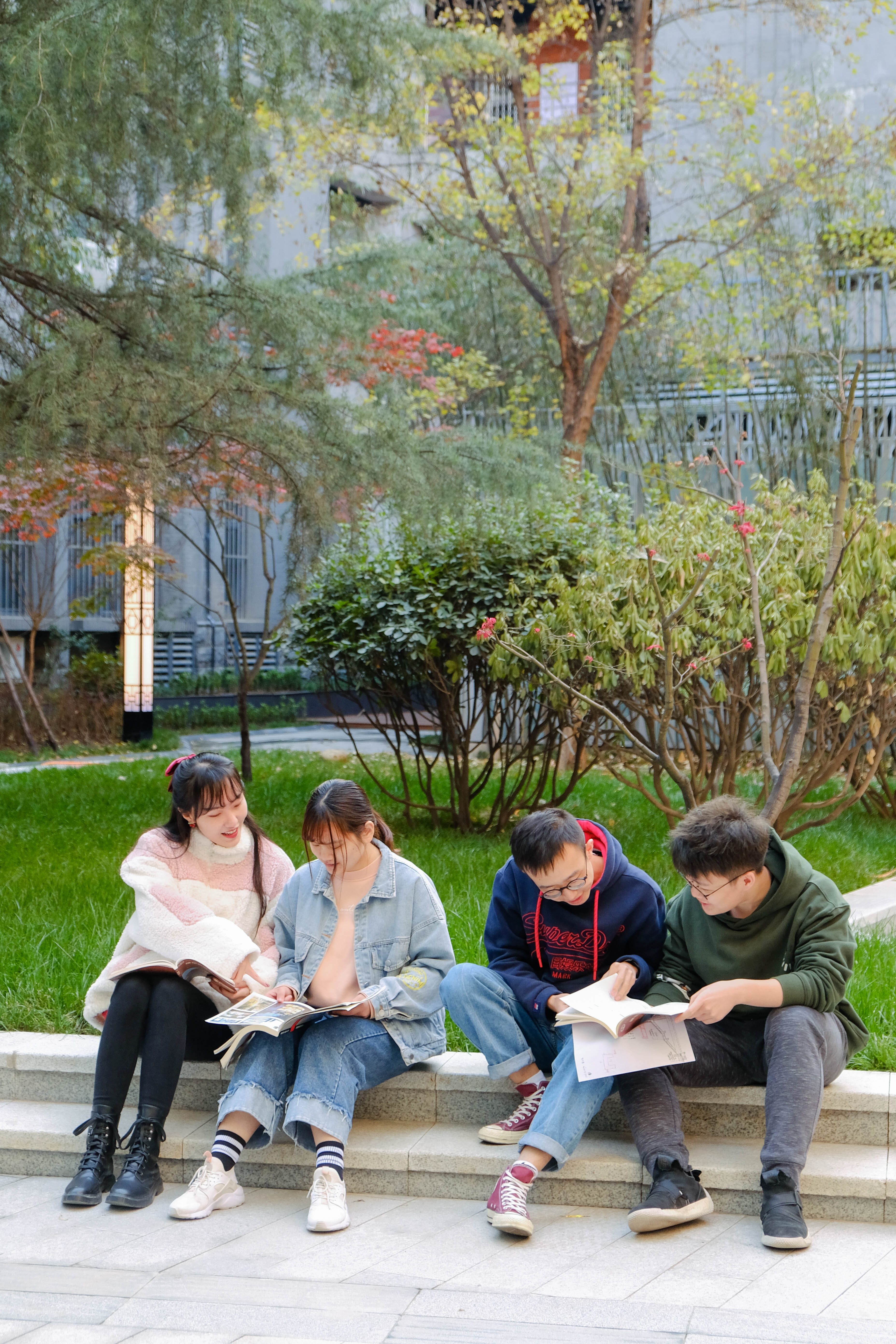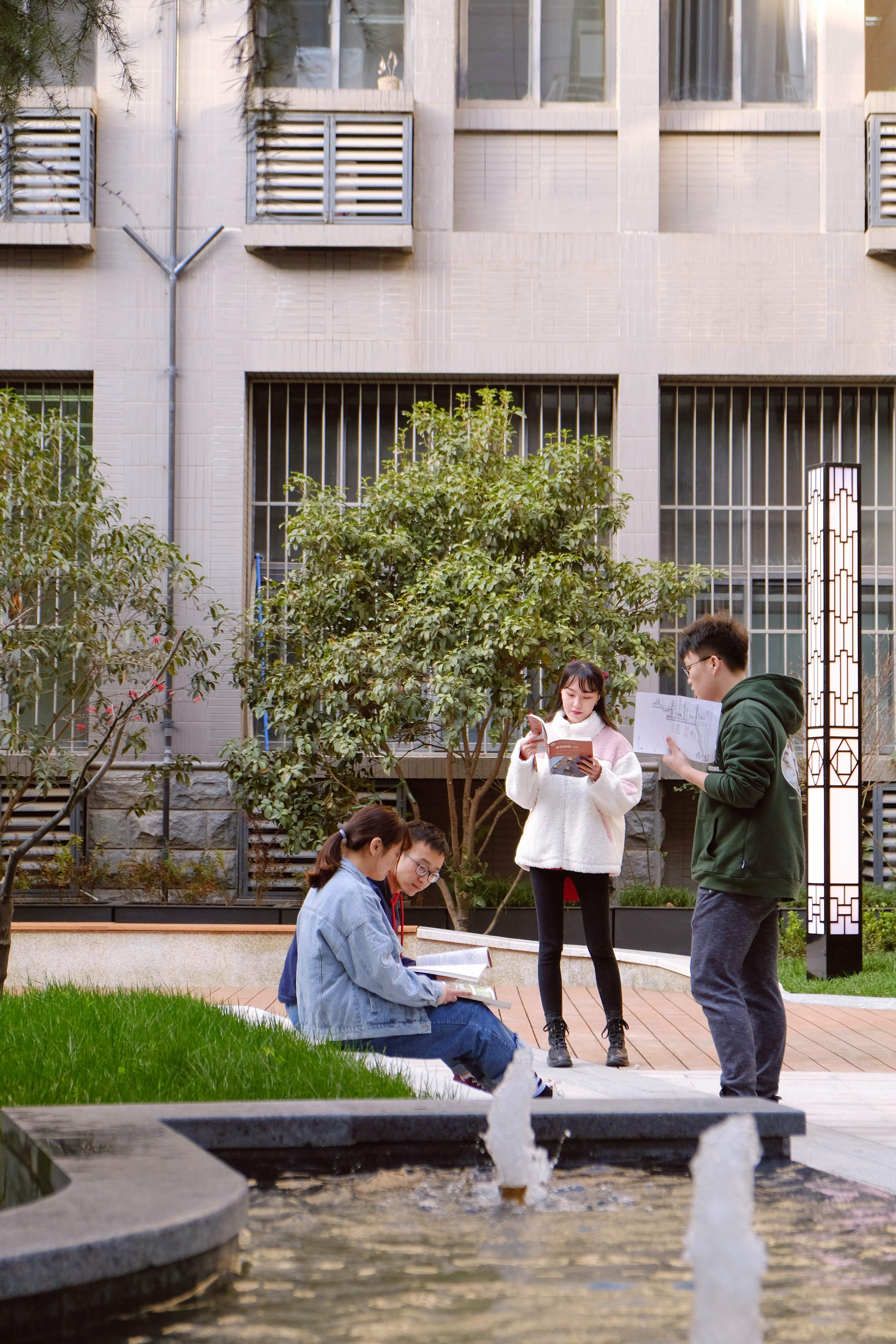 花园里的休闲凳为师生提供了优越的学术讨论环境,泉起时赏水,泉息时观鱼,古人的情致与现代文明在此刻交融在了一起。