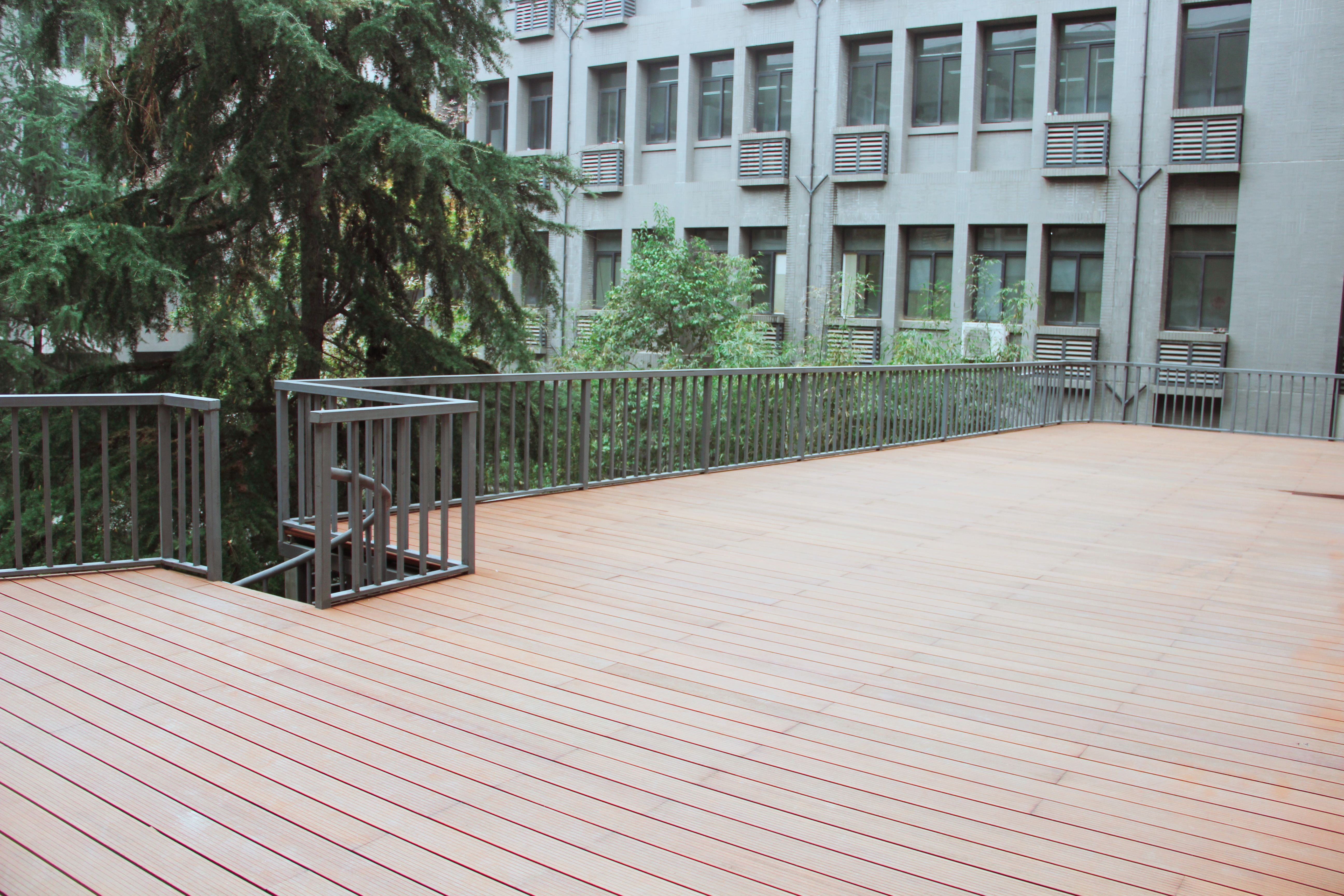 二层钢木结构平台,因为视线的拔高,形成极好的观赏视觉,摆桌椅若干看书赏景,好不惬意!这里开阔的空间也非常适合举办小型的展览活动,未来一定会成为学院一个重要的户外交流探讨的场所。