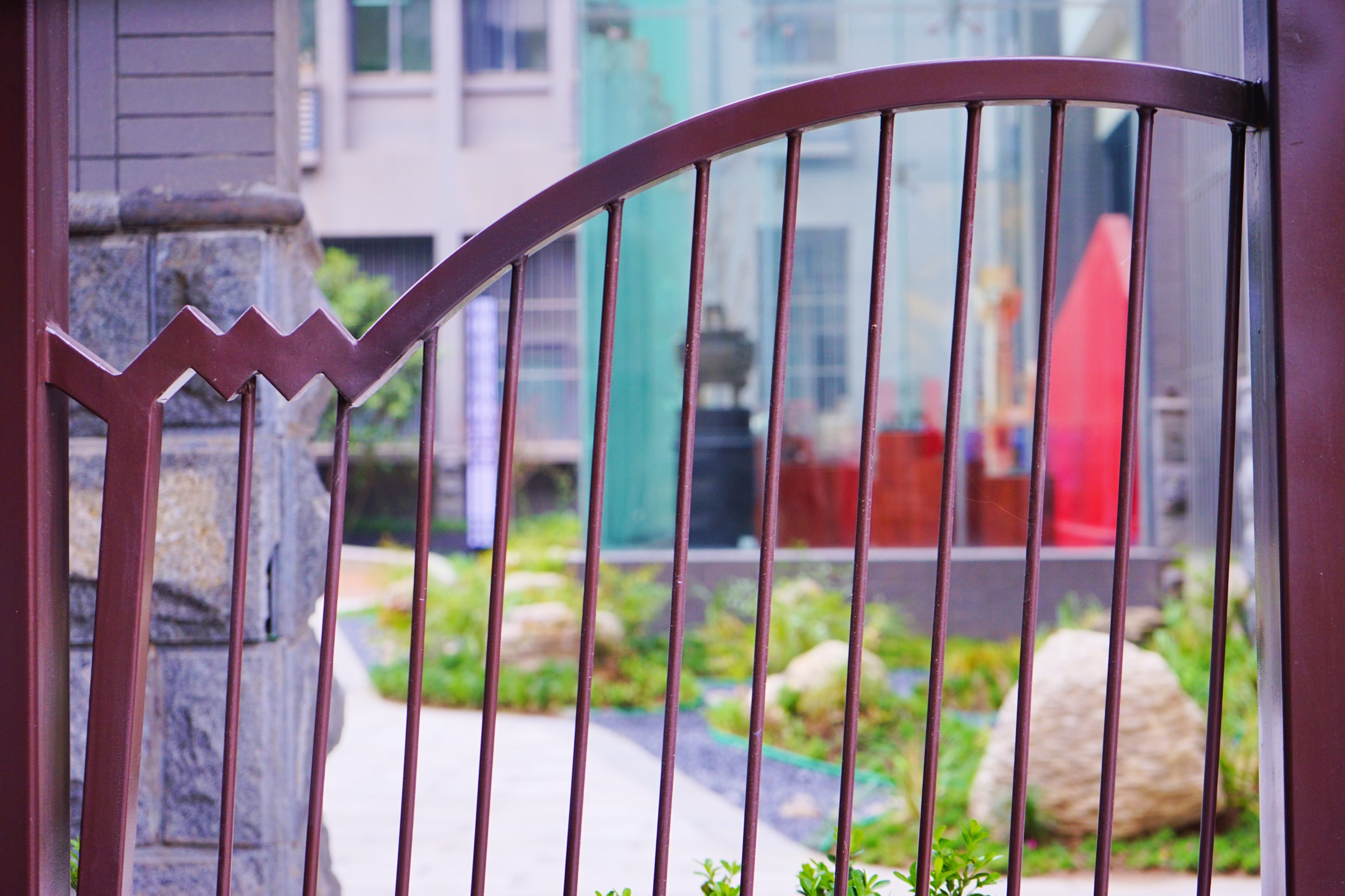 花园的入口处是由低碳钢铸造的造型拱门,“筑梦花园”四个字采用镂空造型,花园内的美景为四字填色,从不同的角度会看到不同的意境,所谓“移步换景”。大门栅栏的造型创意来自于坐标轴和曲线,巧妙地将mg4355vip检测中心的专业特色也融入其中。