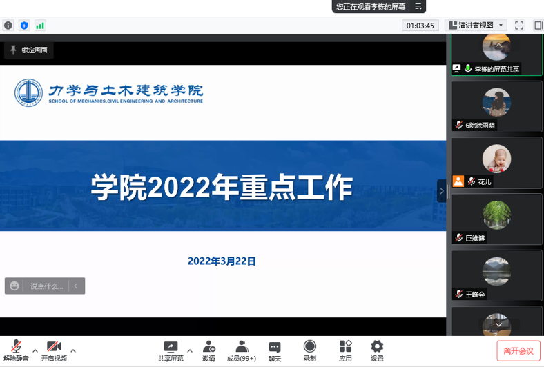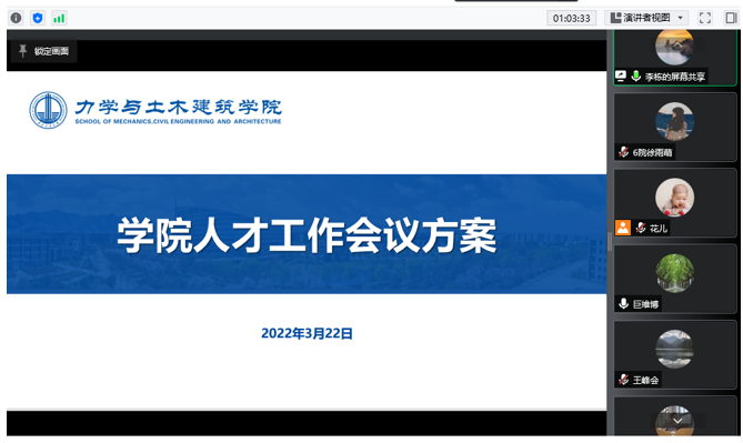 3月22日晚上,mg4355vip检测中心通过腾讯会议线上召开全院教职工大会,学院班子成员、全体教职工参加会议,学院党委书记巨维博同志主持会议。