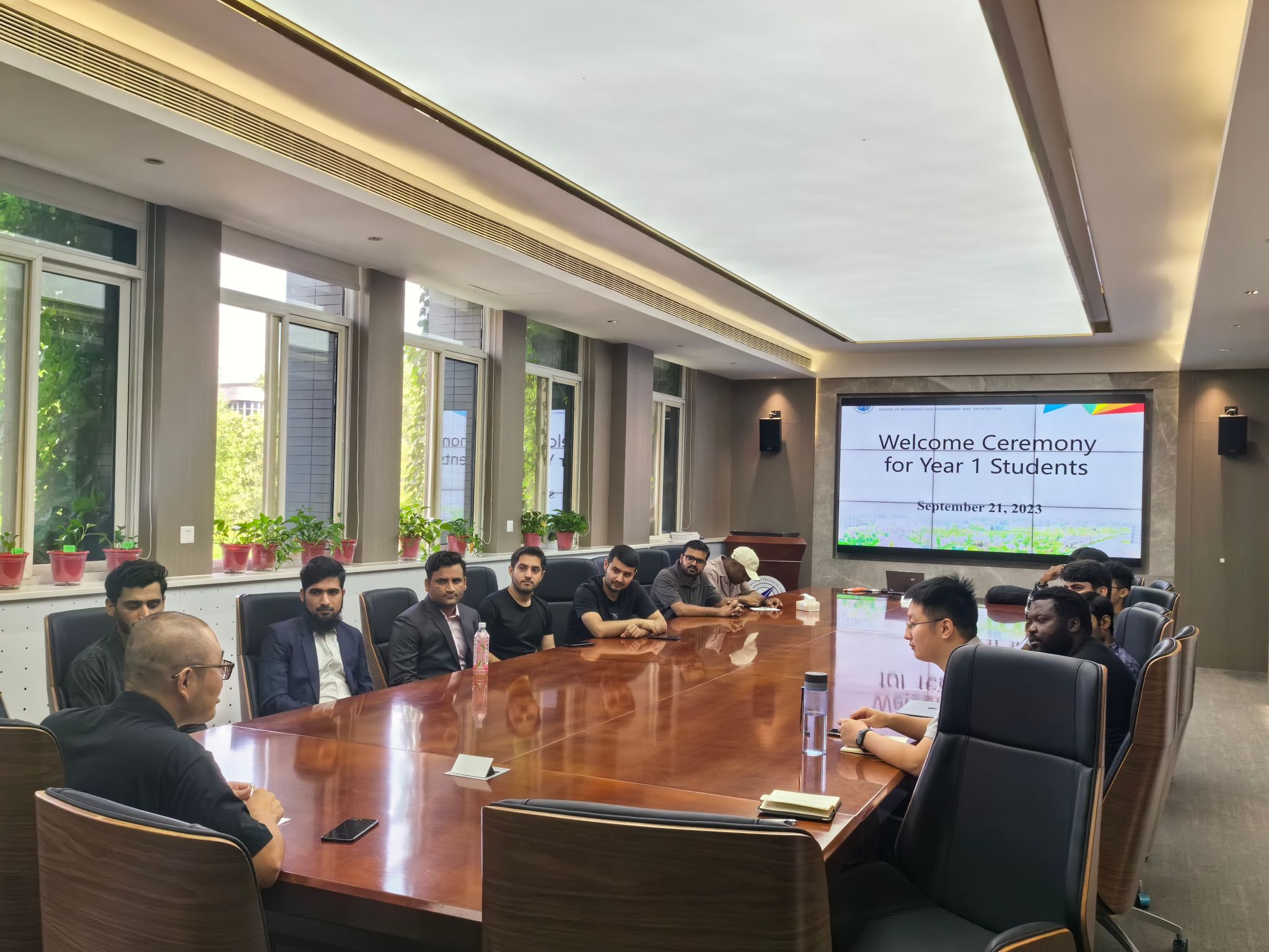 mg4355vip检测中心于2023年9月21日中午在学院楼206会议室召开了2023届留学生新生座谈会。院长助理龙旭主持会谈,吕国建老师及2023级留学生同学出席座谈会。